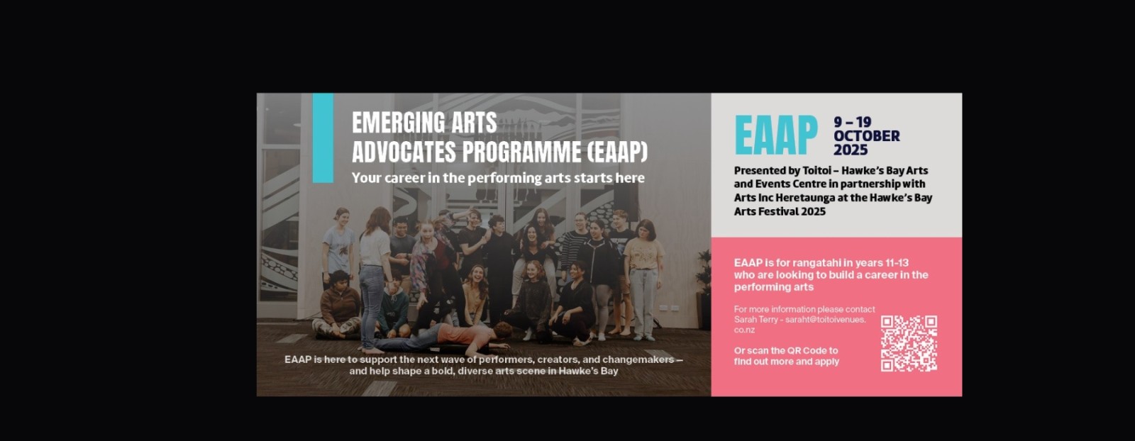 EAAP is here to support the next wave of performers, creators, and changemakers—and help shape a bold, diverse arts scene in Hawke’s Bay.